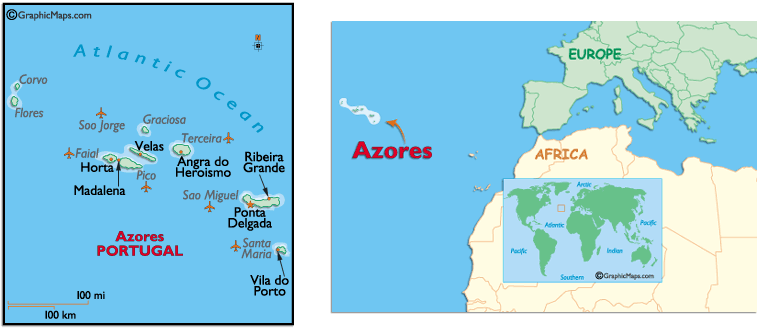 Карта Азорских острововПортугалия, Азорские острова (Portugal, Azores Islands)Европа