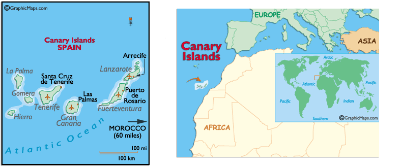 Карта Канарских острововИспания, Канарские острова (Canary Islands)Европа