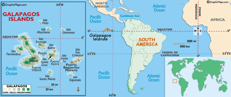 Карта Галапагосских острововЭквадор, Галапагосские острова (Ecuador, Galapagos Islands)Южная Америка