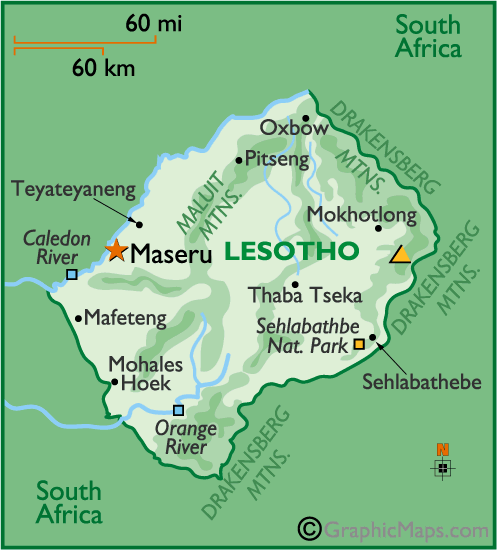 Карта ЛесотоЛесото (Lesotho)Африка