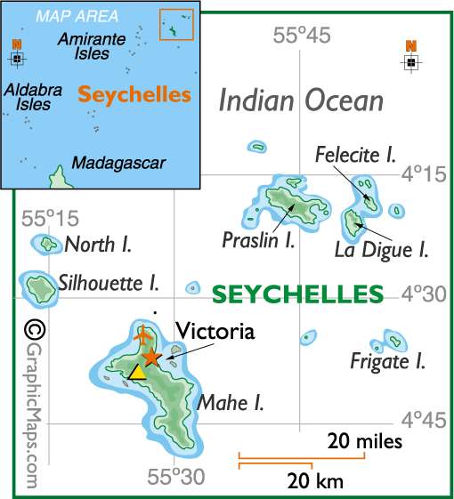 Карта СейшеллСейшеллы (Seychelles)Африка