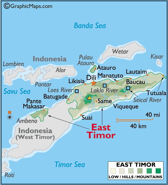 Карта Восточного ТимораВосточный Тимор (East Timor)Австралия и Океания