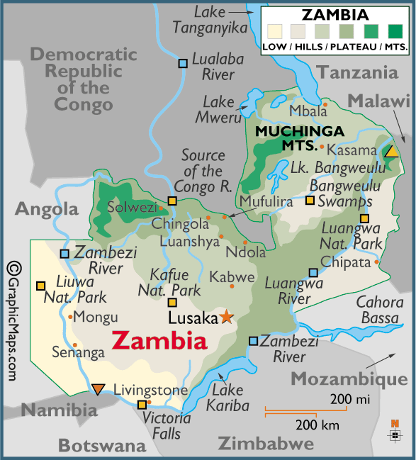 Карта ЗамбииЗамбия (Zambia)Африка